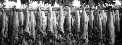 Cod and herring have been the most significant fish in the development of Norway as a fishing nation - for many years cod was the largest Norwegian export. Cod and herring have affected the Norwegian settlement pattern and without cod particularly, Norwegians wouldn’t have lived so scattered along the coastline of Norway. The near endless supply of fish is also the main reason why Norway has gone without any real hunger. The background illustration shows knotted mesh from a fishing net - this type of mesh was a very important innovation in fishing history. It multiplied efficiency and contributed to a significant growth in the fishing industry.