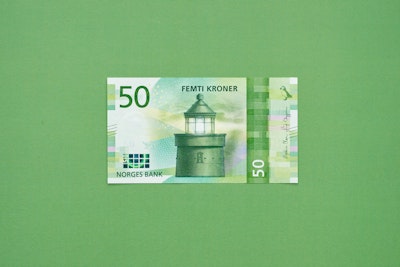 Norwegian banknotes come in 50, 100, 200, 500 and 1000 kroner denominations. The banknotes were finalized by the design department at Norges Bank; the first two - the 100 kroner and 200 kroner notes - were put into circulation during the spring of 2017. The 50 kroner and 500 kroner notes in 2018. The 1000 kroner note was issued in November of 2019.